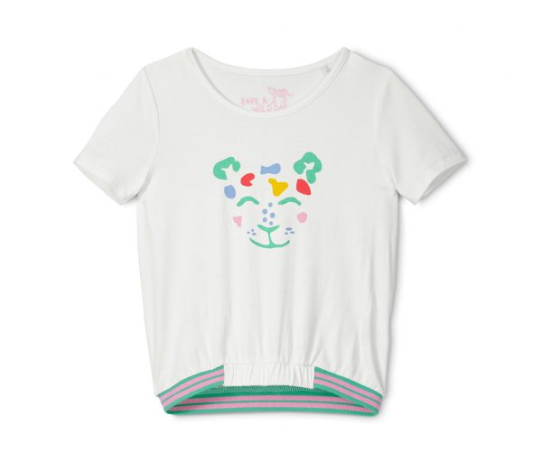 Колір: Бежевий з кольоровим принтом голови леопарда.
