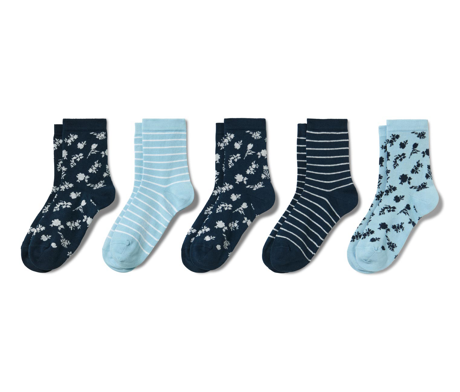 2x темно-синій з білим квітковим трикотажем, 1x світло-блакитна та біла смужка, 1x темно-синя та біла смужка.